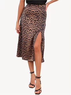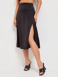 Юбка летняя атласная с разрезом
