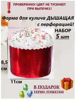 Форма для кулича дышащая! Красный металлик 11см 5шт