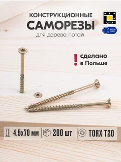 Саморезы по дереву желтые 4,5 х 70 мм конструкционные 200шт