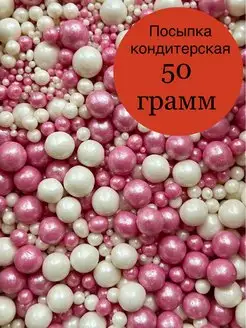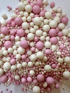 Посыпка украшения для торта бело-розовая