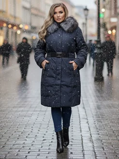Пуховик зимний длинный с капюшоном и мехом