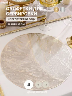 Салфетки на стол круглые, золотые плейсматы 4 шт