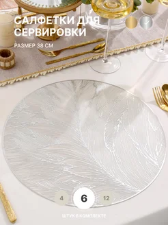 Салфетки на стол круглые, серебристые плейсматы 12 шт
