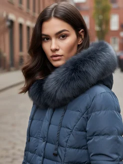 Пальто зимнее с капюшоном и мехом песца