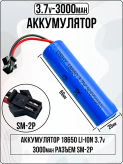 Аккумулятор 18650 3000 mAh, 3.7V, разъем SM-2P