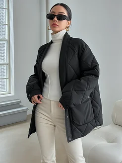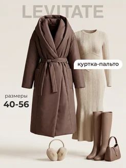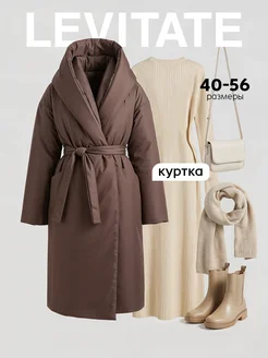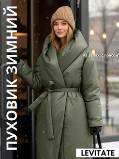 Зимняя удлиненная куртка пальто с поясом на запах