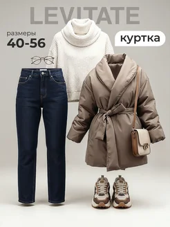 Зимняя куртка пальто с поясом на запах