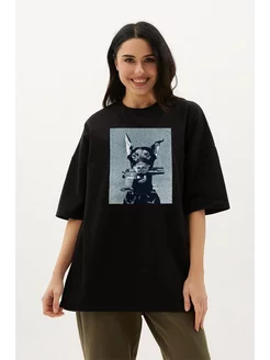 Футболка оверсайз с принтом хлопок
