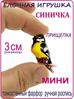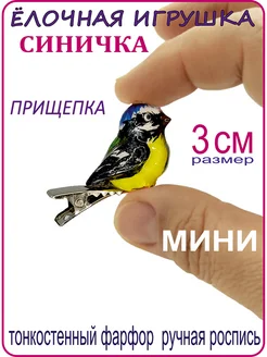Синица взлетающая мини на прищепке - ёлочная игрушка