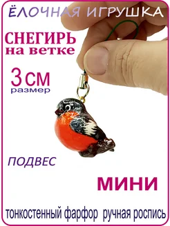 Снегирь на ветке мини, подвес - ёлочная игрушка