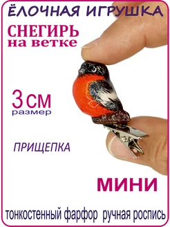 Снегирь на ветке мини, прищепка - ёлочная игрушка авторская
