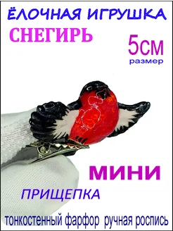 Снегирь в полёте мини, прищепка - ёлочная игрушка авторская