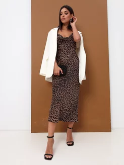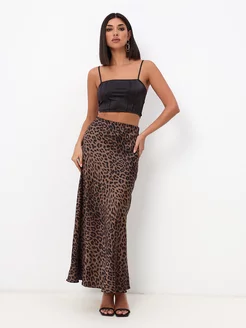 Юбка леопард макси атласная из шелка