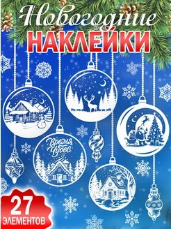 Новогодние наклейки на окна Снежинки и шарики двусторонние