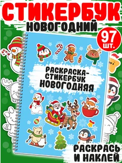 Наклейки новогодние Стикеры раскраски 2026 детские 97 шт