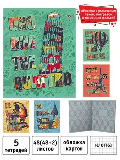 Тетрадь общая 48 листов А5 в клетку набор 5 шт