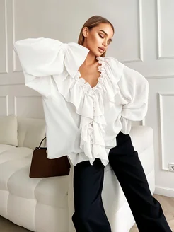 Рубашка блузка школьная офисная с воланами и рюшами