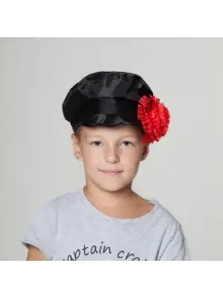 Шляпа карнавальная детская Картуз черный с цветком, разм 52