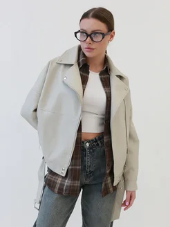 Косуха бежевая куртка кожаная oversize винтажная