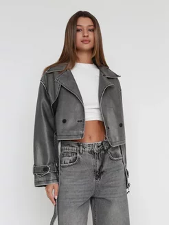 Косуха бежевая оверсайз винтажная кожаная куртка