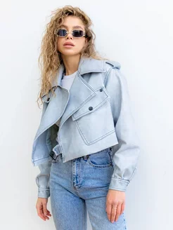 Косуха голубая оверсайз кожаная куртка винтажная