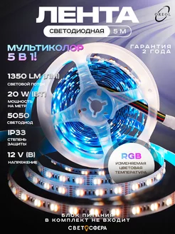 Светодиодная лента 20Вт 12V IP33 RGB+CCT 3000-6000K 5в1