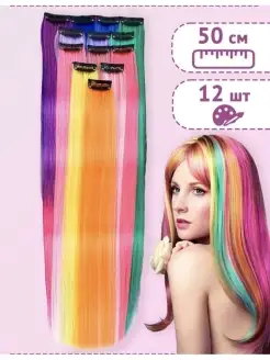Цветные пряди для волос 12 шт 50 см Канекалоны на заколках