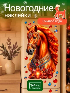 Новогодние наклейки на стену символ 2026 год огненная лошадь