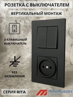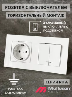 Розетка с выключателем двухклавишным с подсветкой гориз