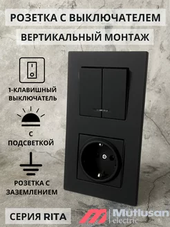 Розетка с выключателем одноклавишным с подсветкой вертик