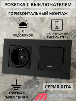 Розетка с выключателем одноклавишным с подсветкой гориз