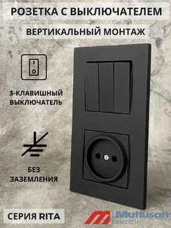 Розетка с выключателем двухклавишным с подсветкой вертик