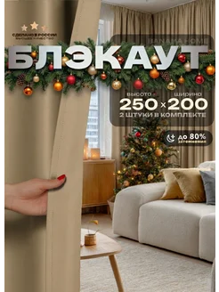 Шторы блэкаут бежевые для гостиной и спальни 200х250см 2 шт