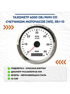 Тахометр 6000 об мин со счетчиком моточасов (WS), SR 1-10