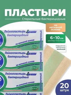Лейкопластырь 6*10 см нетканый с зеленкой 20 шт