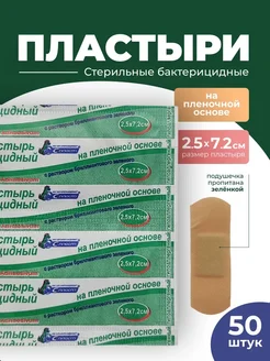 Лейкопластырь 2,5*7,2 см пленочный с зеленкой 50 шт