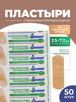 Лейкопластырь 2,5*7,2 см пленочный с хлоргексидином 50 шт