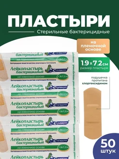 Лейкопластырь 1,9*7,2 см пленочный с хлоргексидином 50 шт