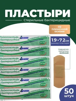 Лейкопластырь 1,9*7,2 см пленочный с зеленкой 50 шт
