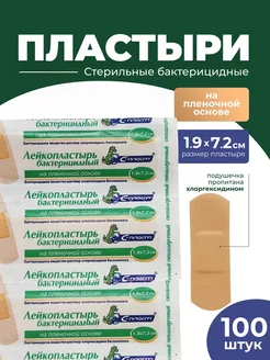 Лейкопластырь 1,9*7,2 см пленочный с хлоргексидином 100 шт