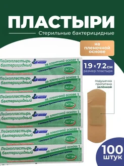 Лейкопластырь 1,9*7,2 см пленочный с зеленкой 100 шт