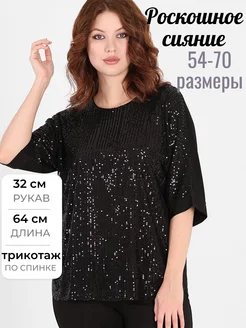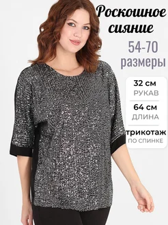 Блуза с пайетками нарядная большие размеры