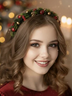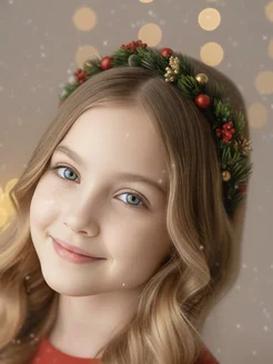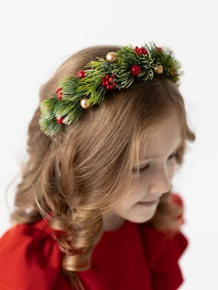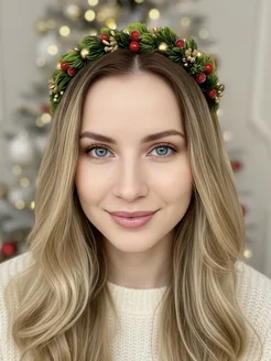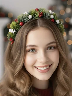 Красный ободок с ёлочкой и ягодами на Новый год 2026