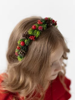 Ободок с ёлкой литой и ягодами Новогодний ручная работа