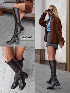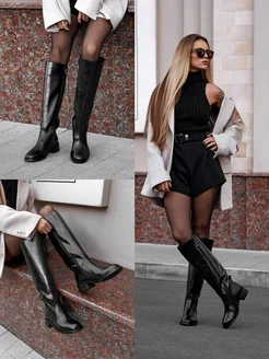 Сапоги трубы женские демисезонные натуральная кожа черные