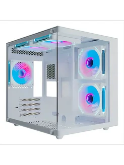 Корпус Aquarium H101-W TG, mATX USB 1*3.01*2.0, 5*12cm