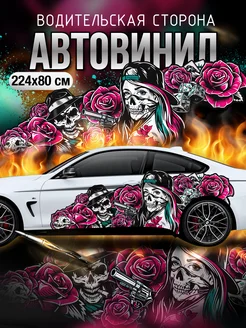 Наклейка на левый борт авто большая Muertos Pink 224x80 см