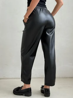 Кожаные брюки на резинке больших размеров