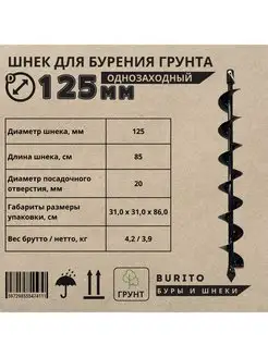 Шнек для мотобура однозаходный по грунту 1,1 м, D-125 мм