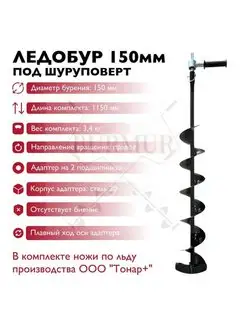 Ледобур под шуруповерт 1м, D-150 мм + комплект ножей